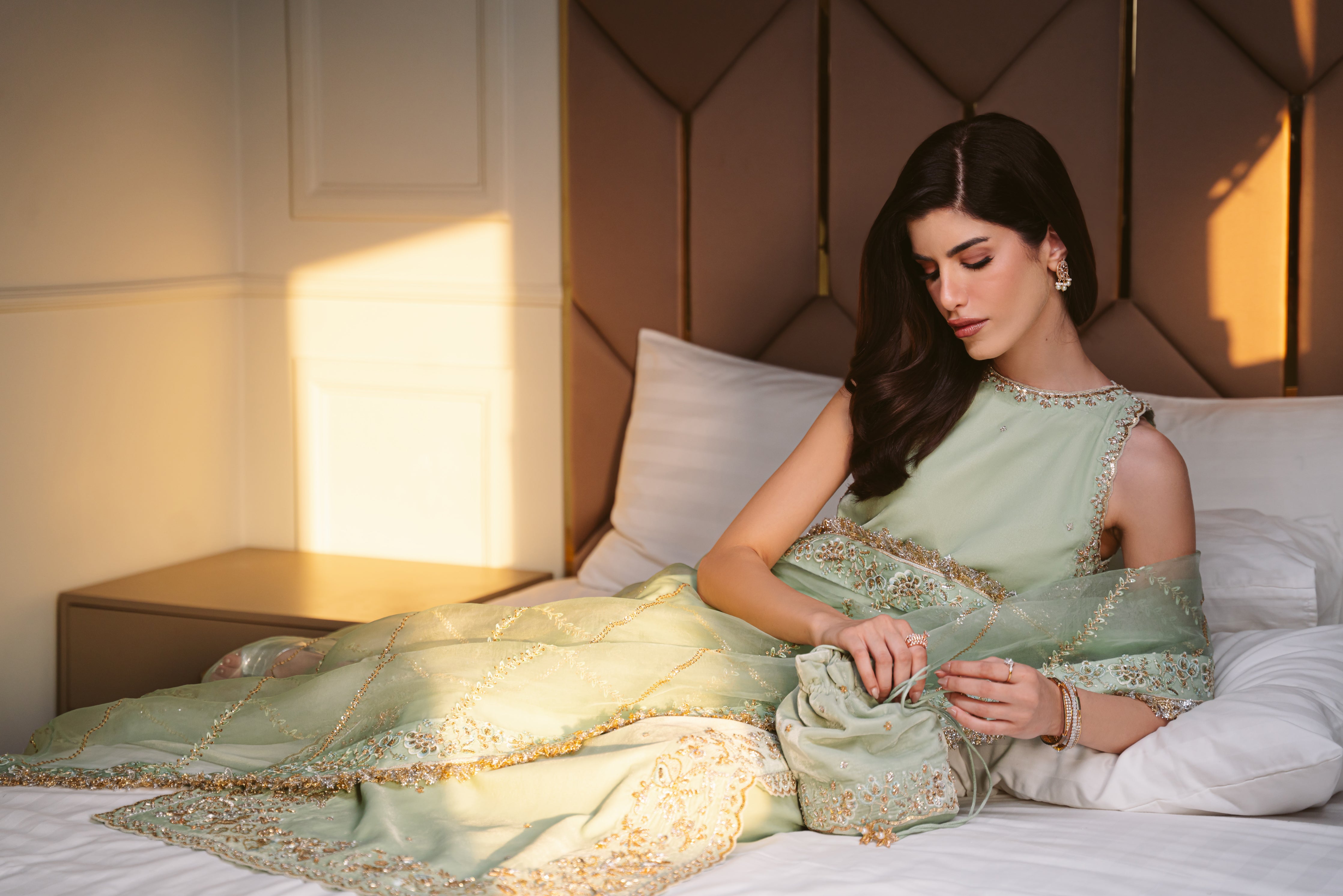 LIME YELLOW LUXURY EMBROIDERED 2PCS SET (NPA2-25304) - READY TO WEAR